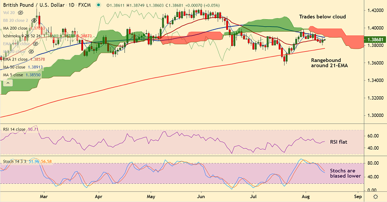 Support level - 1.3765 (200-DMA), Resistance level - 1.3891 (50-DMA)