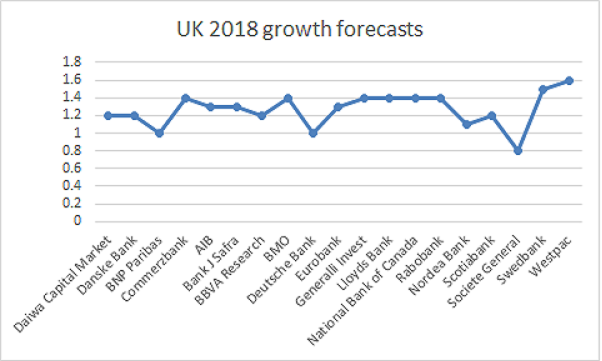 The United Kingdom’s economic growth is expected to hover around 1.3 percent during the course of 2018, owing to the downward pressure created by the ongoing uncertainties over the UK-EU Brexit negotiations that have weighed on the consumer as well as business spending.
