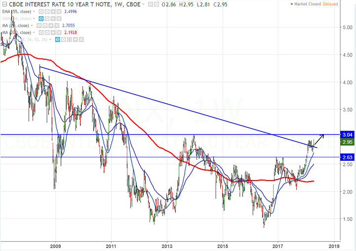 The United States’ 10-year Treasury yield is expected to rally up to the 3.00 psychological mark, having already reached a 4-year high of 2.79 at the end of closing Friday amid a bounce in energy prices. This is, however, likely to lead to a dampening in risk sentiments across all markets; participants will still, remain cautious on the burgeoning developments in the geopolitical context and Middle East tensions, with a close eye on the greenback’s movement.