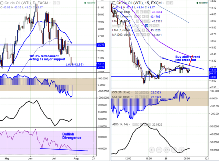 - On the higher side ,minor resistance is $43.25 and any violation above $43.25 will take the oil to next level till $43.85/$44.