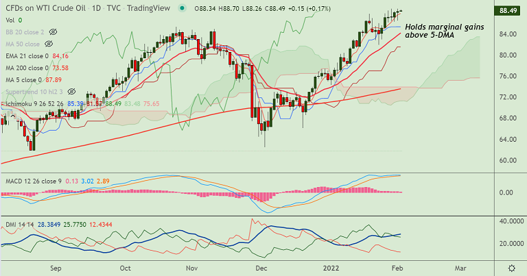 US Oil was holding marginal gains on the day and was trading 0.18% higher at $88.50 at around 04:55 GMT.