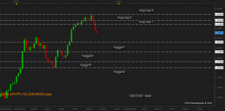 - Sell USD against Canadian Dollar at current price (1.288) and at rallies, with targets around 1.265, 1.24, 1.217 and 1.20 area. Stop loss can be placed around 1.31, 1.32 and 1.35 depending on risk aversion.