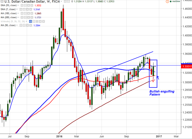 - Loonie has formed Bullish Engulfing pattern in weekly chart. The pair declined till 1.30800 previous week before Fed meeting and jumped sharply after Fed increased the Federal funds rate projection to thrice from two.