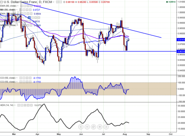 - Any break below 0.9630 will drag the pair down till 0.9580/0.9525.Further weakness can be seen only below 0.9500.The minor support is around 0.9680.