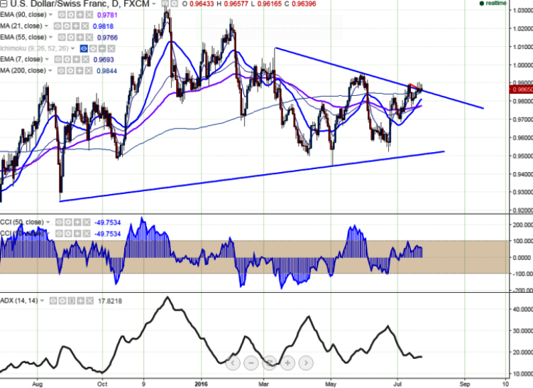 - The pair made a temporary top around 0.99066 on Jul 21st and declined till 0.9843 from that level. Short term trend is bullish as long as support 0.9838 (200 day MA) holds.