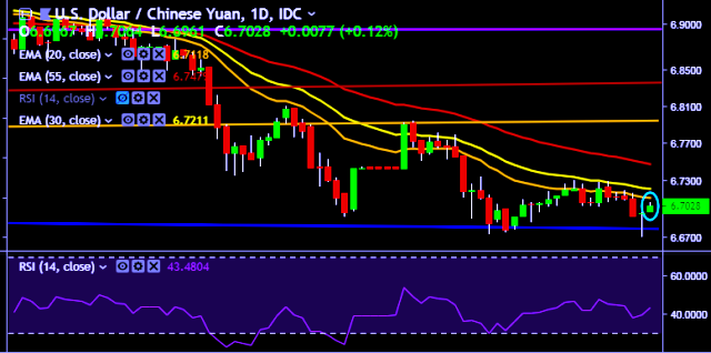 - It made intraday high at 6.7064 and low at 6.6961 levels.
