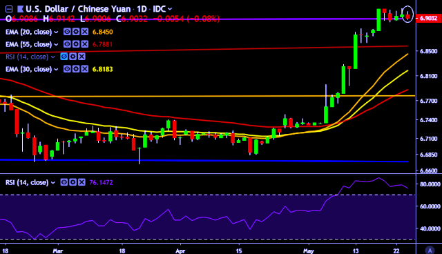We prefer to take long position on USD/CNY only above 6.9187, stop loss 6.8965 and target of 6.94/6.9548.