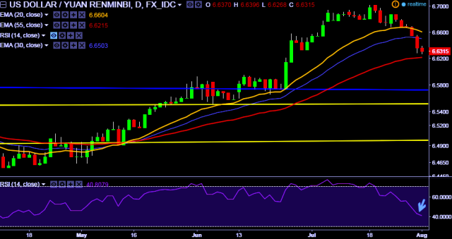 We prefer to take short position in USD/CNY only below 6.65, stop loss 6.6700 and target 6.6448/6.6340.