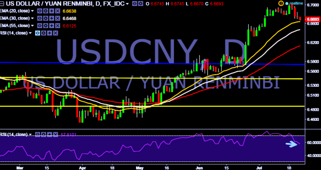 We prefer to take short position in USD/CNY around 6.6750, stop loss 6.7017 and target 6.6530.