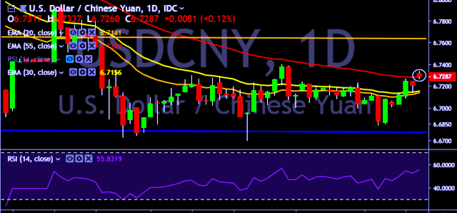 We prefer to take long position on USD/CNY around 6.7270, stop loss at 6.7150 and target of 6.7380/6.7422.