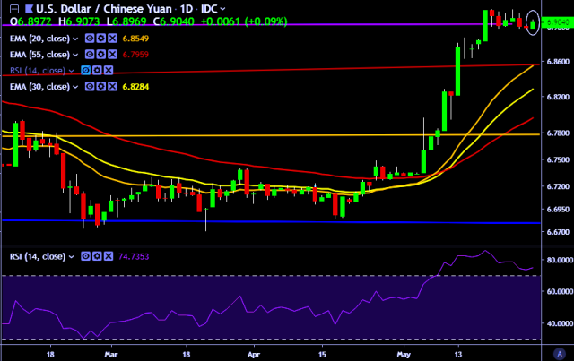 We prefer to take long position on USD/CNY around 6.90, stop loss 6.8800 and target of 6.9248.
