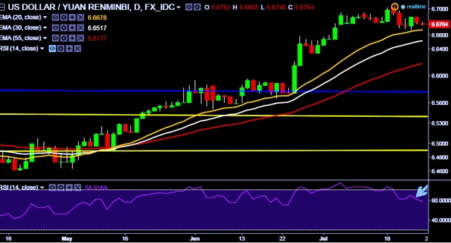 - It made intraday high at 6.6805 and low at 6.6746 levels.