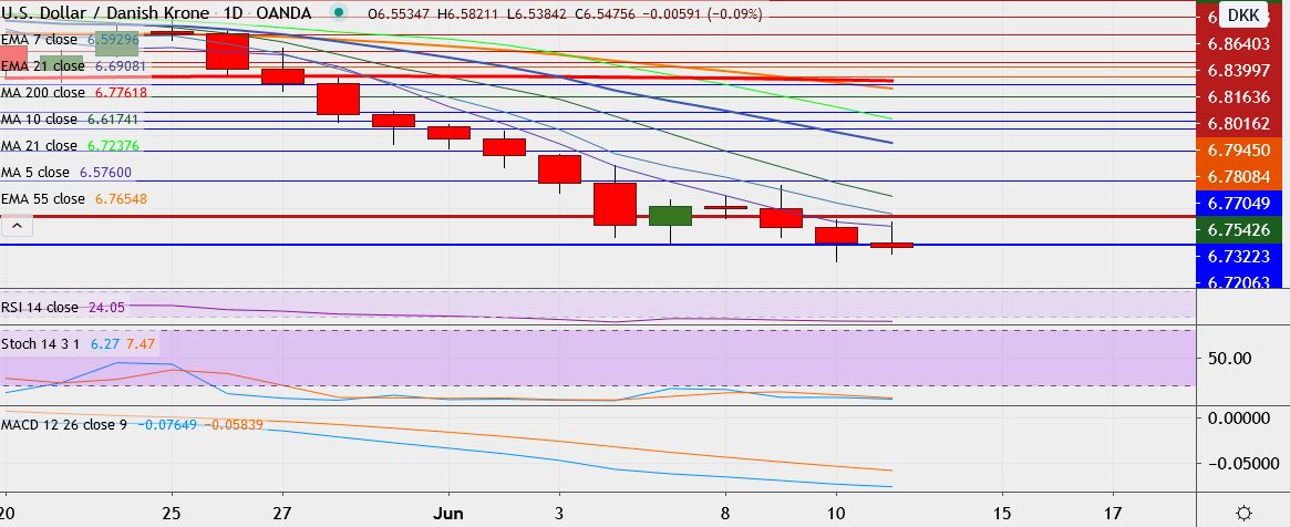 FxWirePro: USD/DKK drifts towards 3-month low, likely to break below 6.5225