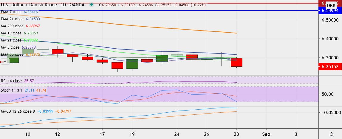FxWirePro: USD/DKK hits 1-week low, dip till 6.2404 likely