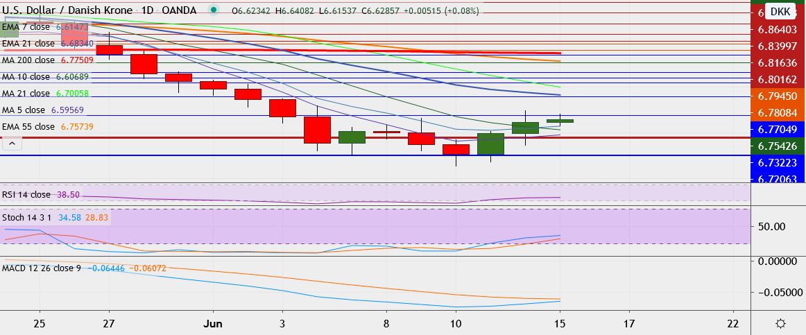 FxWirePro: USD/DKK hovers towards 1-1/2 week peak, likely to test 6.6600
