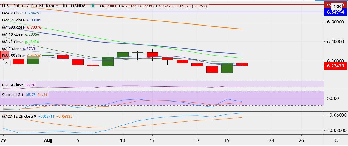 FxWirePro: USD/DKK hovers towards multi-year lows, struggles to break above 6.2900
