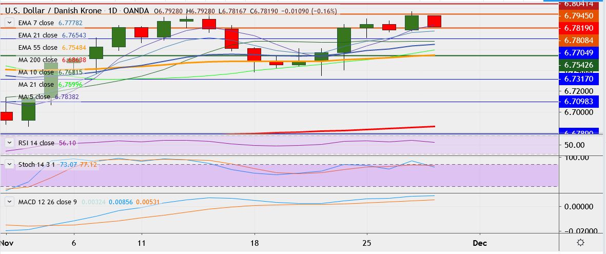 - USD/DKK is currently trading 0.2 percent down at 6.7822, having hit high of 6.7966 on Wednesday, its highest since November 14.