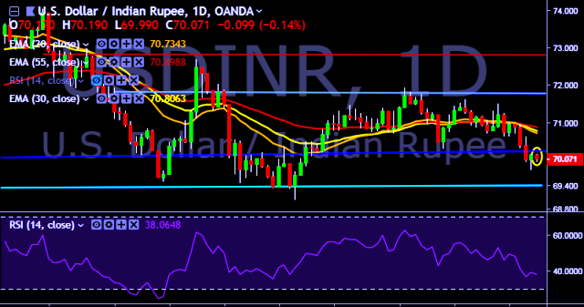 We prefer to take short position on USD/INR around 70.10, stop loss at 70.25 and target of 69.60.