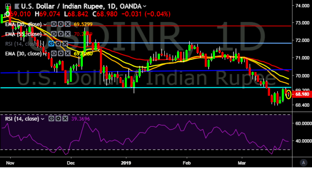 We prefer to take short position on USD/INR around 69.00, stop loss at 69.32 and target of 68.60.