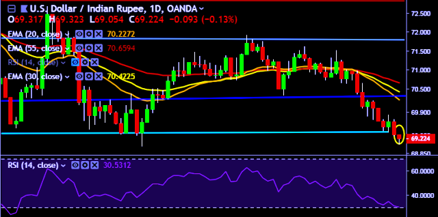 - Key resistances are seen at 69.70, 69.98, 70.20, 70.51, 70.68 and 70.85 marks respectively.