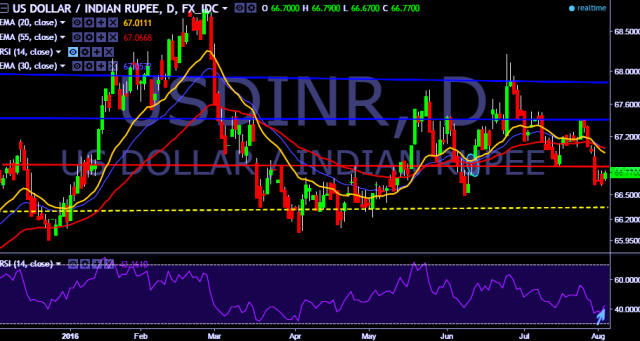 - On the other side, initial supports are seen at 66.62, 66.42(May 01, 2016 low), 66.32 (November 2015 low), 66.23, 66.10, 65.95 and 65.81 marks respectively.