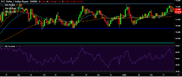 - It made intraday high at 71.89 and low at 71.71 marks.