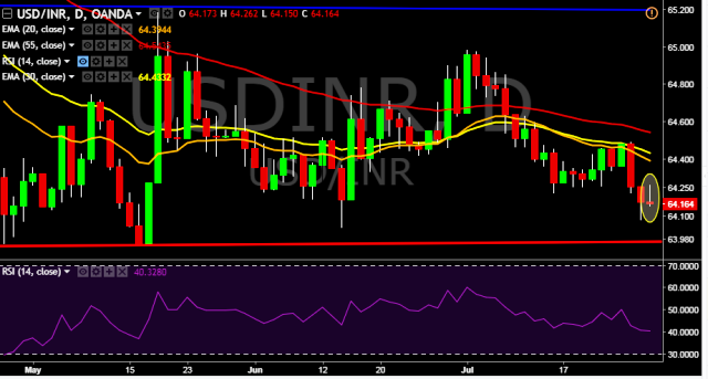 - It made intraday high at 64.25 and low at 64.07 marks.