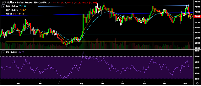 - It made intraday high at 71.21 and low at 70.97 marks.