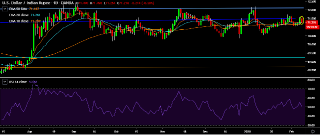 We prefer to take short position on USD/INR around 71.30, stop loss at 71.49 and target of 71.10/70.90.
