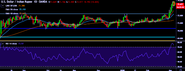 We prefer to take short position on USD/INR around 73.55, stop loss at 73.80 and target of 73.00/72.58.
