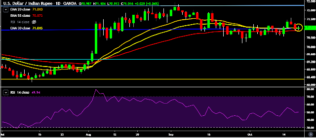 - It made intraday high at 71.10 and low at 70.90 marks.
