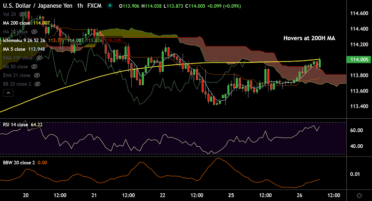 USD/JPY was trading 0.19% higher on the day at 113.92 at around 06:45 GMT, outlook is neutral.