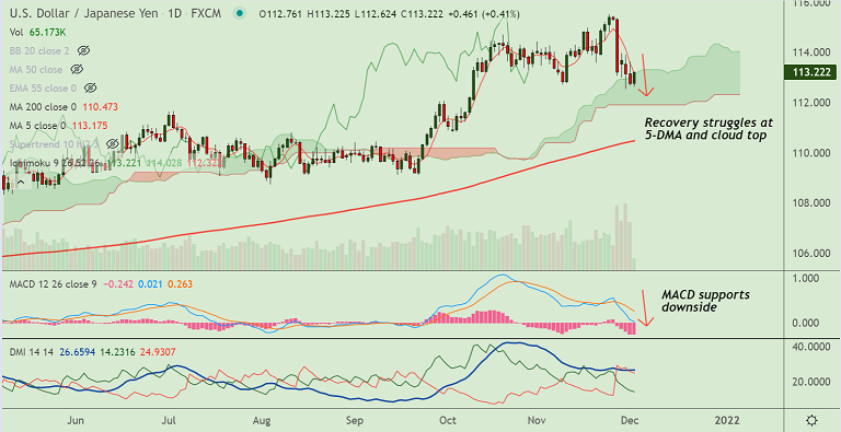 - Recovery attempts are struggling at 5-DMA and cloud top