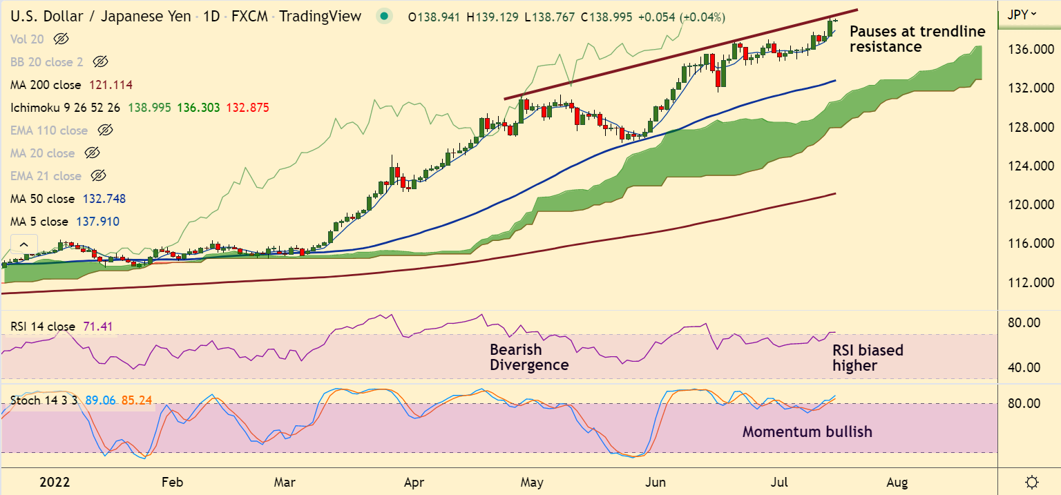 Summary: USD/JPY was trading with a strong bullish bias. Scope for fresh multi-year highs above 140 handle.