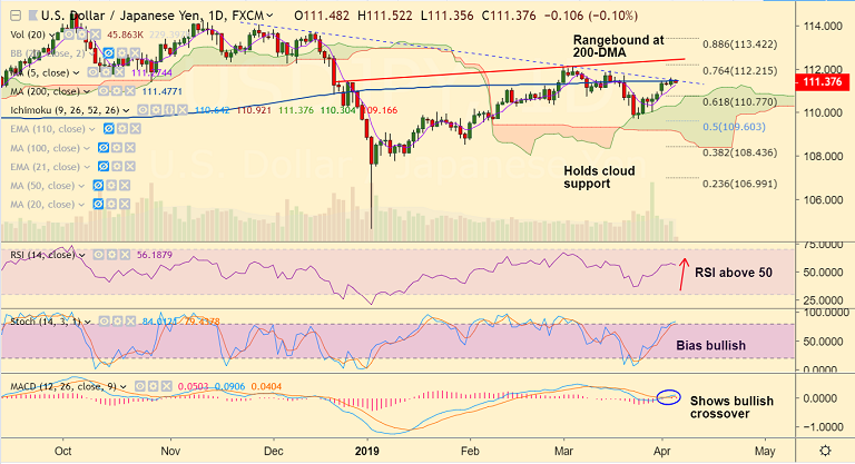 Support levels - 111.27 (5-DMA), 110.99 (110-EMA), 110.87 (55-EMA)