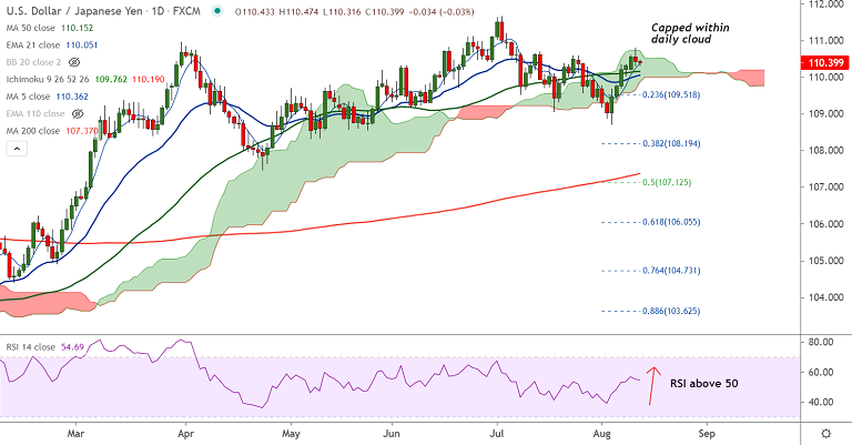 Technical analysis shows upside bias for the pair remains intact. Break above cloud will fuel further gains in the pair.