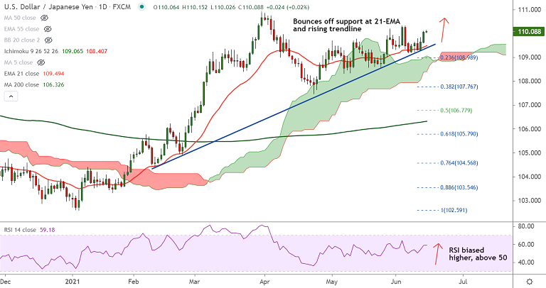 USD/JPY was trading marginally higher on the day at 110.07 at around 04:20 GMT, outlook remains bullish.