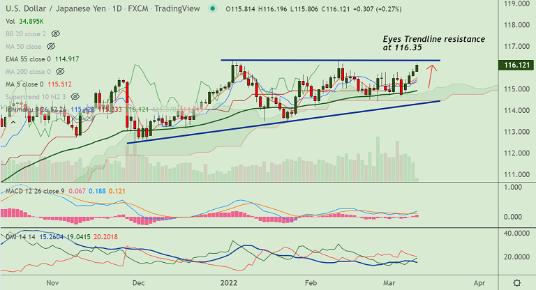 Focus now on US CPI for a fresh impetus. US Consumer Price Index (CPI) for February is expected to rise to 7.9% from 7.5% prior.