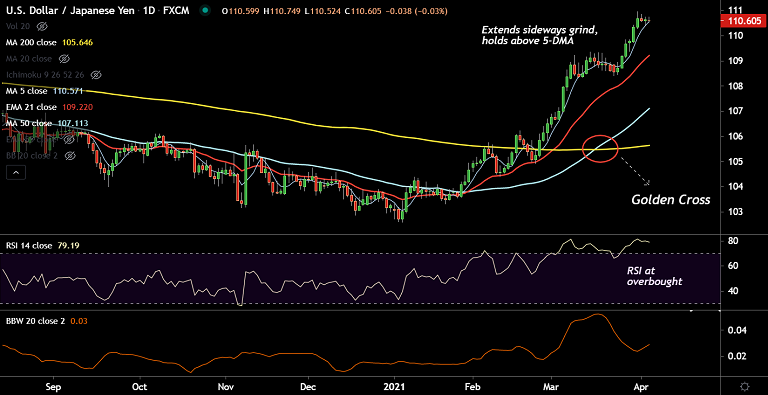 The pair is extending sideways grind for the 3rd straight session, but technical bias remains bullish.
