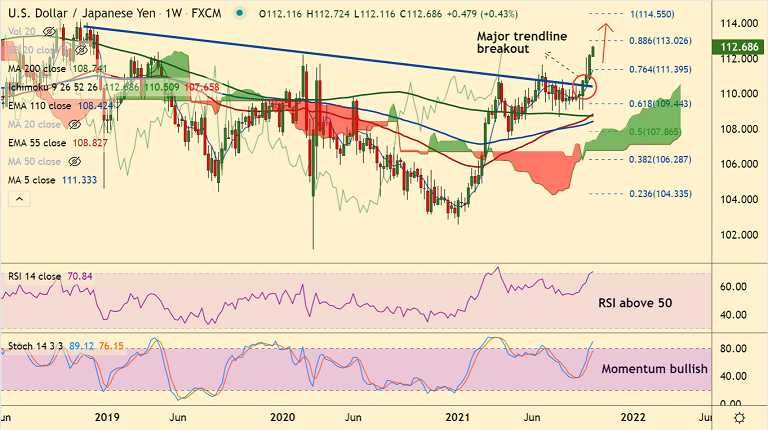 Summary: USD/JPY trades with a bullish bias. Scope for test of 113 mark.