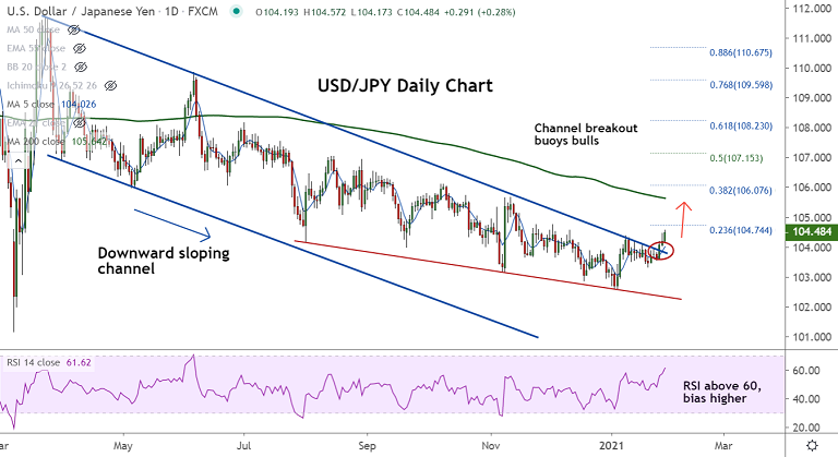 Technical indicators have turned bullish on the intraday charts. Channel breakout buoys bulls in the pair. USD/JPY is on track for further gains.