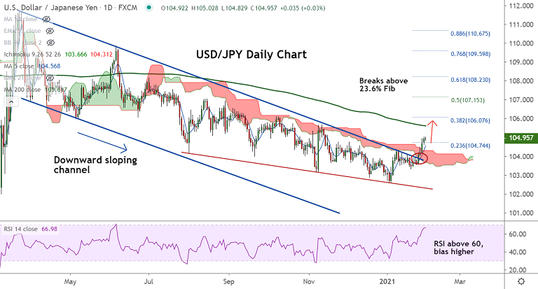 USD/JPY was trading 0.07% higher on the day at 104.99 at around 05:45 GMT, outlook remains bullish.