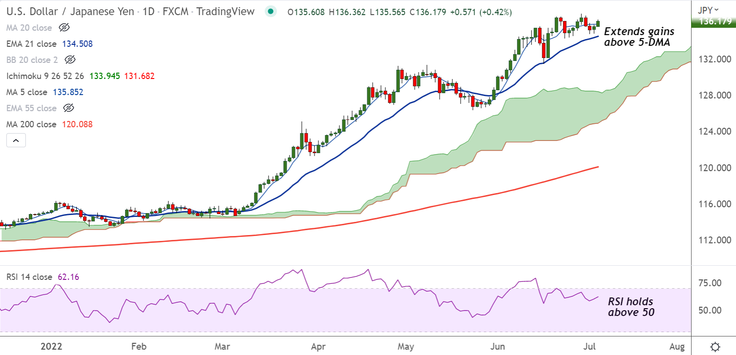 Summary: USD/JPY extends bounce off 20-DMA support. Scope for gains above 137 handle.