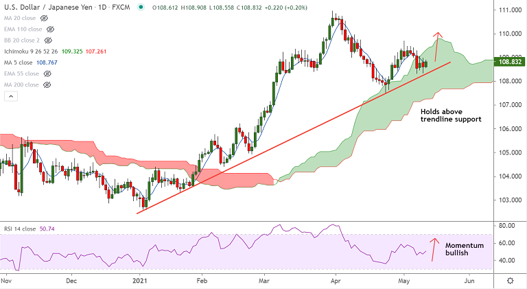 USD/JPY was trading 0.21% higher on the day at 108.83 at around 05:30 GMT, buying interest in the US dollar supports.