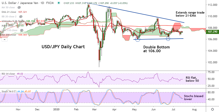 USD/JPY was extending range trade for the second straight session, bias neutral.