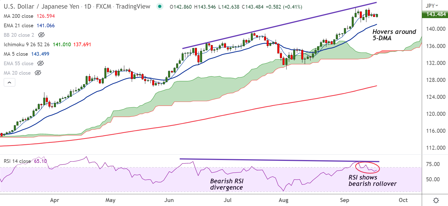 The pair is extending sideways grind around 5-DMA, intraday bias remains neutral.
