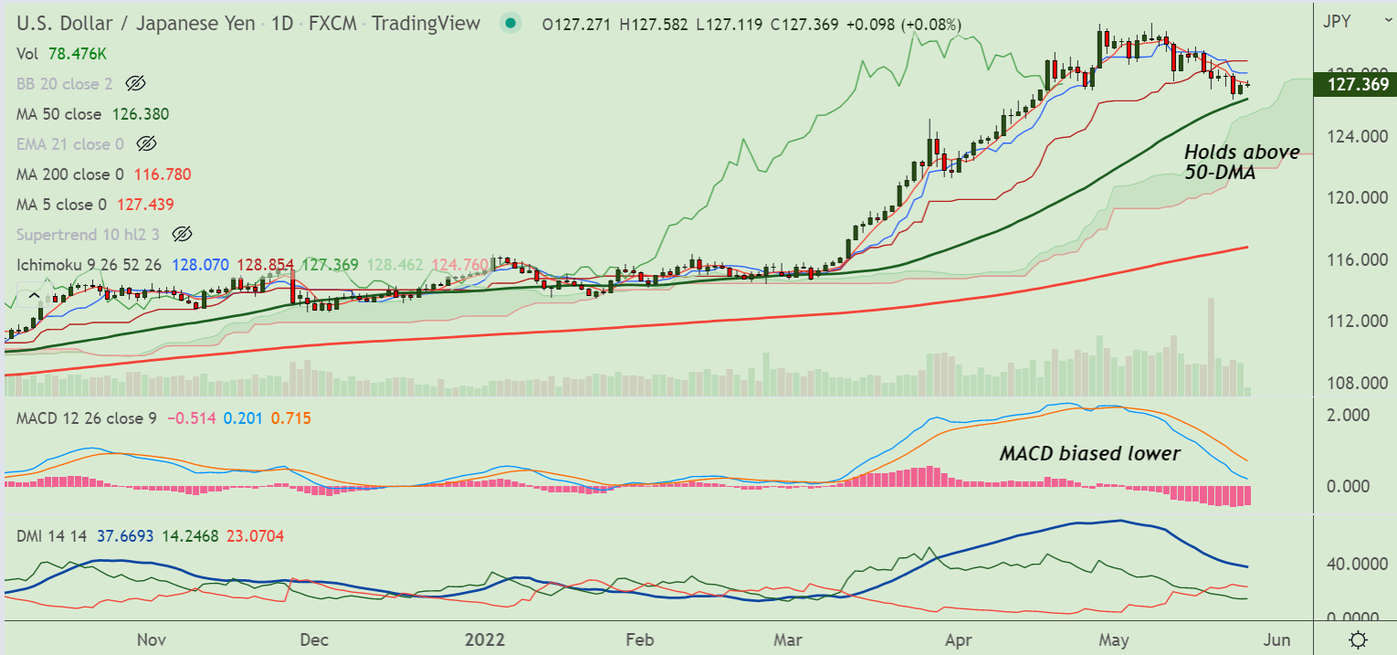 Technical bias for the pair remains tilted to the downside. Retrace above 21-EMA could change near-term dynamics.