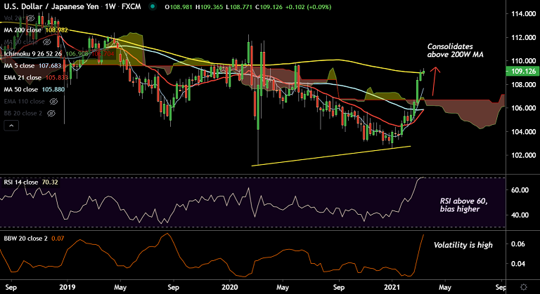 USD/JPY was trading marginally higher at 109.13 at around 05:30 GMT, bulls hold-off from placing aggressive bets ahead of FOMC meet.