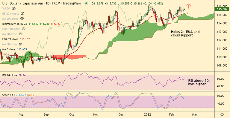 USD/JPY was trading 0.18% higher on the day at 115.78 at around 08:40 GMT. The pair is extending gains for the 3rd straight session, outlook is bullish.