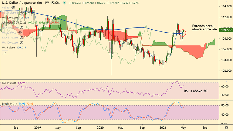 US dollar continues with a positive momentum across the board and a weekly close above 200 week SMA reinforces upside bias.